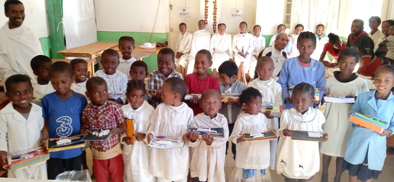 Collecte de médicaments et fournitures scolaires auprès des employés de la société MITJAVILA sur Rivesaltes en France.